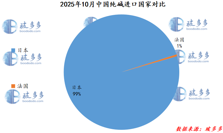 10月纯碱进口前两名国家为:日本、法国;分别占总进口量99%、1%。