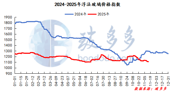 据玻多多数据测算:11月14日浮法玻璃价格指数为1104.71,较上一工作日下降3.14,幅度为-0.28%。