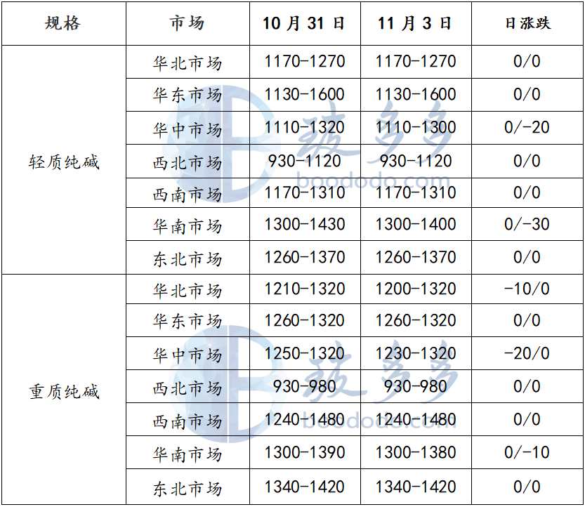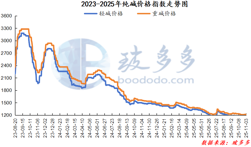 玻多多数据测算:11月3日轻质纯碱价格指数为1155.71,较上一工作日持平;重质纯碱价格指数为1211.43,较上一工作日下降4.29,幅度为-0.35%。